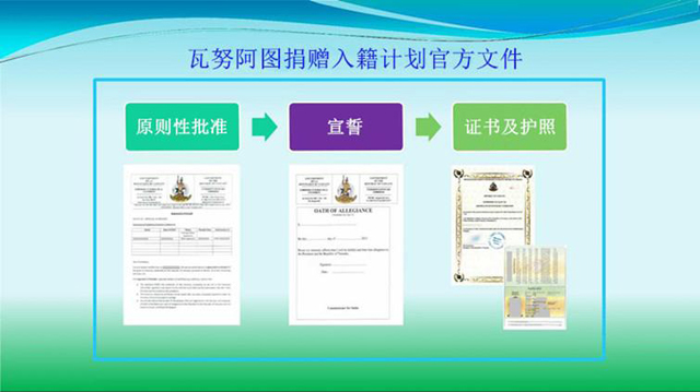 2016年12月,瓦努阿圖依據(jù)《國籍法第112章》第13D條的規(guī)定,正式頒布了《2016年第220號國籍條例(捐獻(xiàn)計(jì)劃)法令》,也稱為瓦努阿圖公民發(fā)展支持計(jì)劃 (DSP),允許年滿18周歲的申請人通過經(jīng)濟(jì)貢獻(xiàn)獲取公民身份及護(hù)照,快至3個月即可獲批,無語言學(xué)歷要求,無需解釋資金來源,無居住要求。